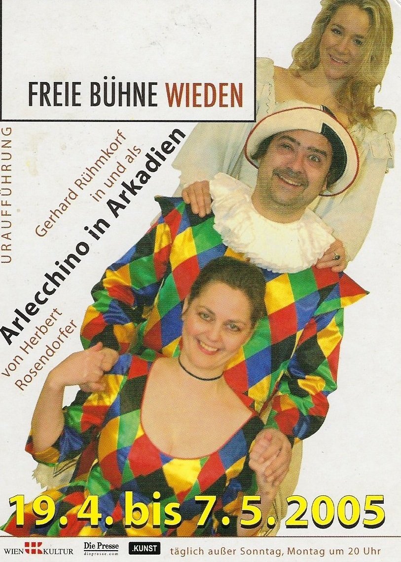 Nach „Turandot“ und „Mandragola“ hat der raffiniert begabte Herbert Rosendorfer ein drittes Stück für den Arlecchino Gerhard Rühmkorf und die Freie Bühne Wieden geschrieben. Diesmal findet die ganze Commedia dell´ Arte in Arkadien statt.