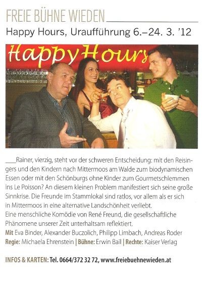 Komödie von René Freund mit Eva Christina Binder, Alexander Buczolich, Philipp Limbach, und Andreas Roder