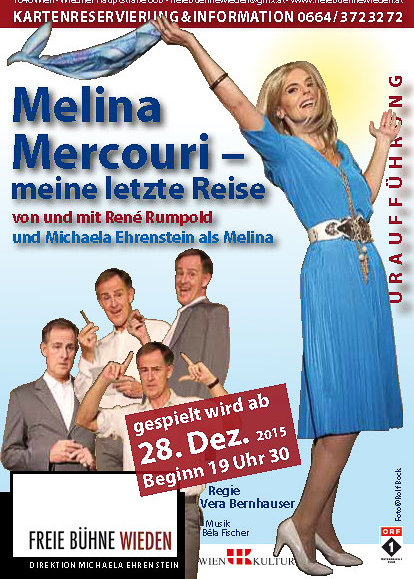 Das Zweipersonenstück, das kurz vor Silvester Welturaufführung feiert, erzählt in Episoden die Lebensgeschichte der griechischen Schauspielerin ("Sonntags nie", "Phaedra", "Stella", "Topkapi"), Sängerin ("Ich bin ein Mädchen von Piräus") und Politikerin Melina Mercouri, deren Herz trotz internationaler Bekanntheit nie aufhörte für Griechenland zu schlagen. Eine außergewöhnliche Frau, die mit Kampfgeist und Elan für ihre Überzeugung eintrat. Ein Stück griechischer Geschichte. Mit Musik, die an Griechenland erinnert.